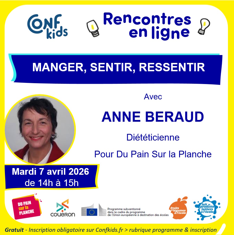 Cette Confkids sera animée avec Anne Beraud de l’association Du pain sur la planche, qui développe des actions de prévention primaire en nutrition c’est-à-dire sur l’alimentation et l’activité physique.